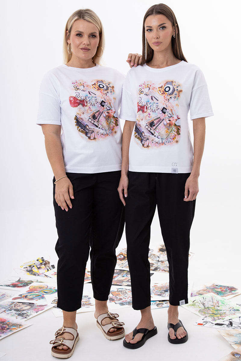 Уникальная футболка воплощающая творческий дух коллаборации с талантливой художницей Ольгой Южик. На футболках нанесены эксклюзивные принты, созданные по мотивам её картин, которые