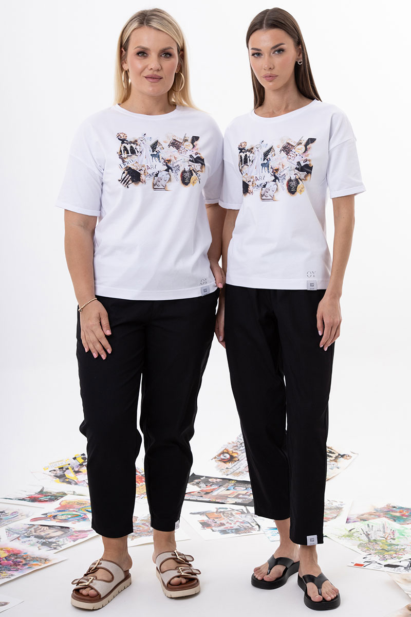 Уникальная футболка воплощающая творческий дух коллаборации с талантливой художницей Ольгой Южик. На футболках нанесены эксклюзивные принты, созданные по мотивам её картин, которые