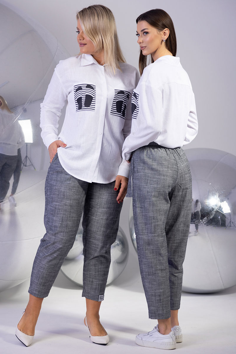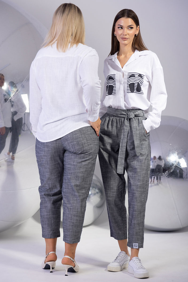 Женский костюм из льна с вискозой: элегантная блуза с принтом и укороченные брюки