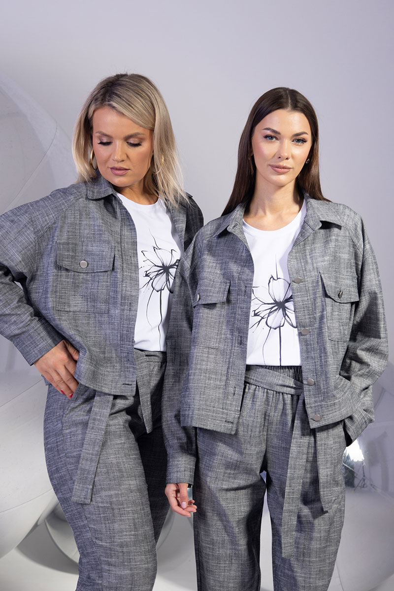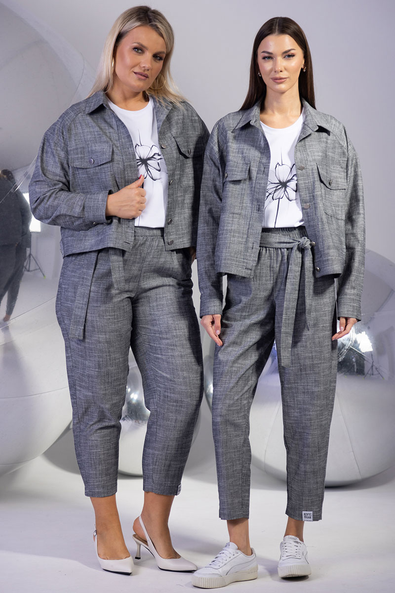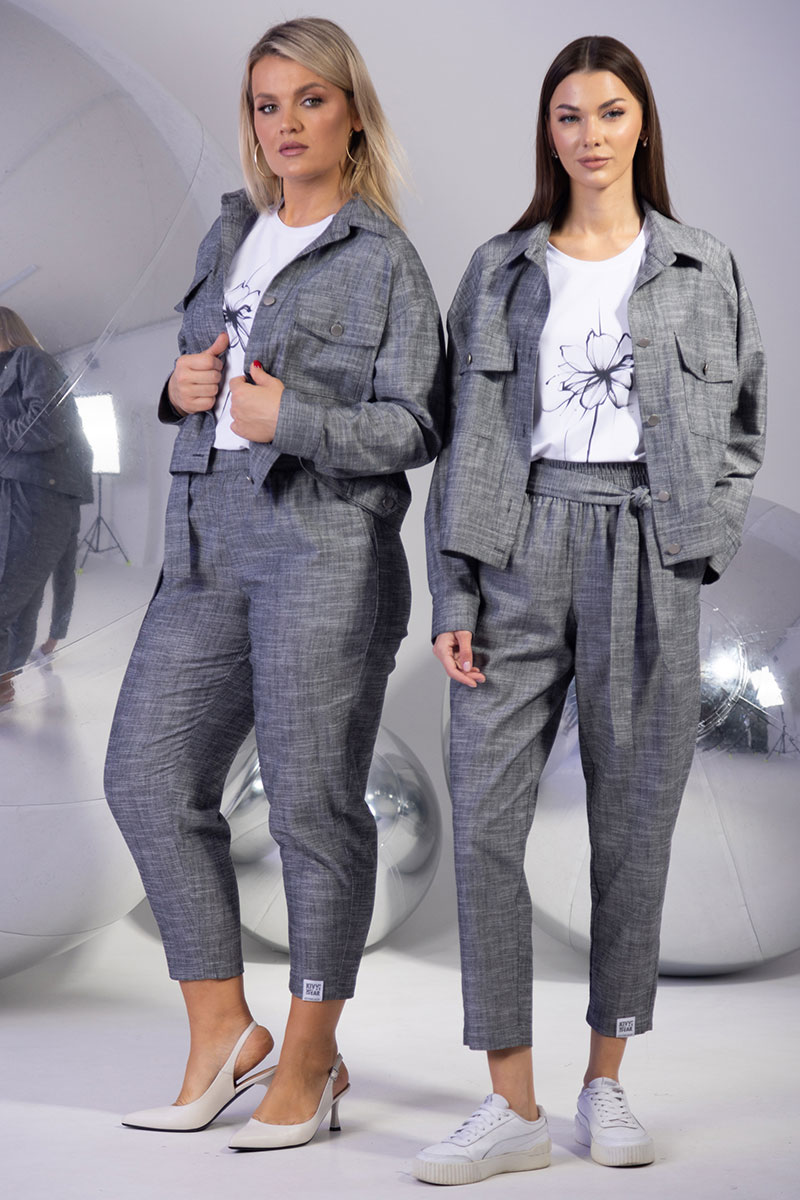 Обновите свой гардероб этим летом с элегантным льняным костюмом, который сочетает в себе утонченный жакет и удобные укороченные брюки. Идеальный комплект для тех, кто ценит