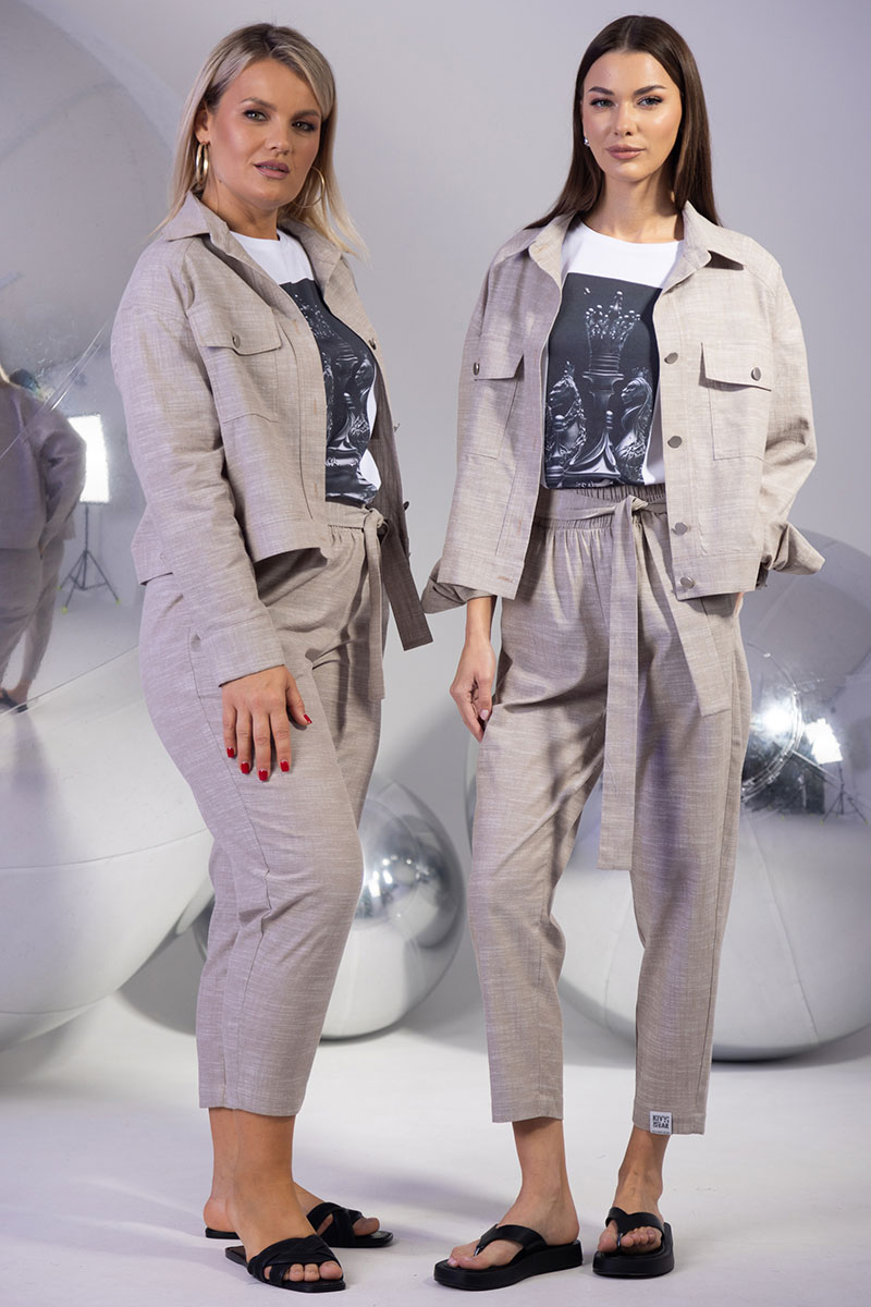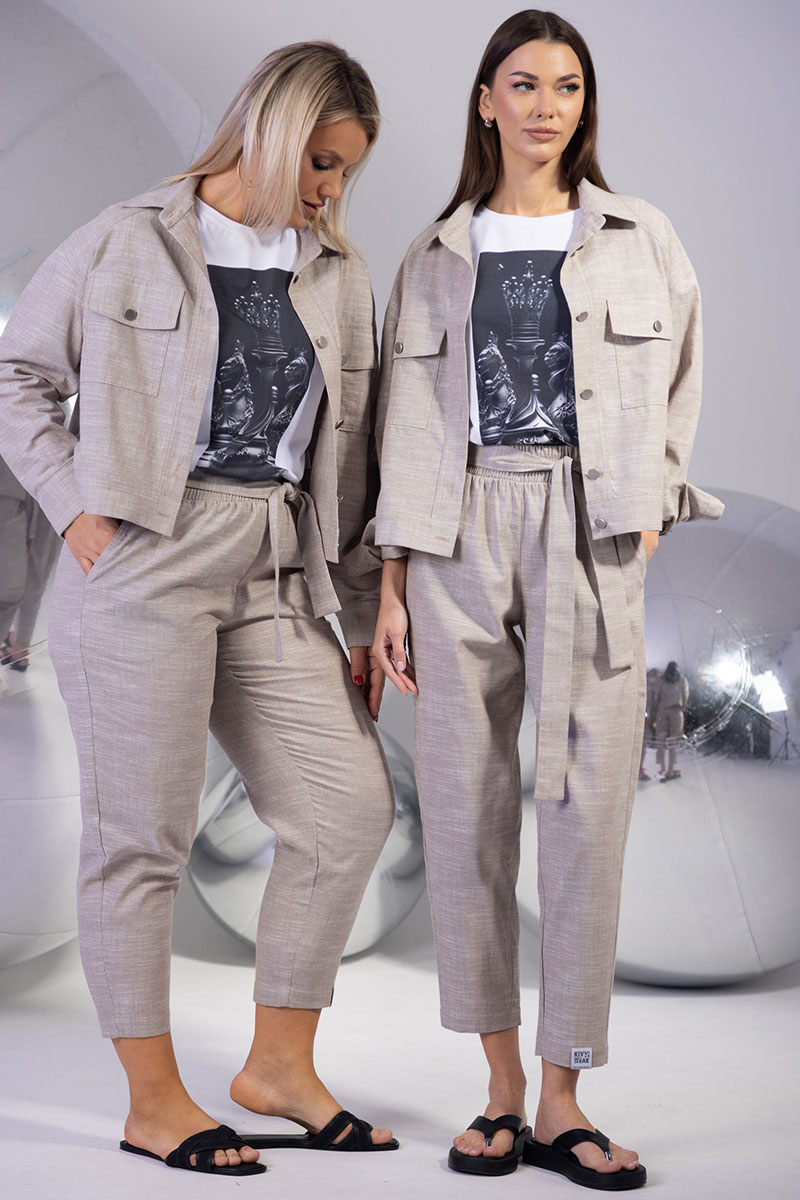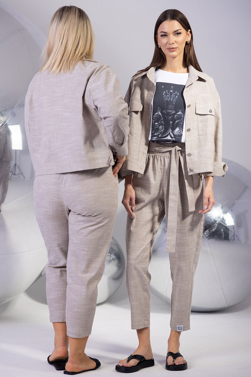 Льняной костюм с жакетом на пуговицах и укороченными брюками – стиль и комфорт в каждой детали