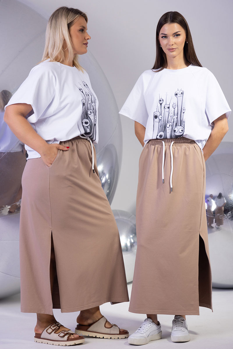 Обновите свой гардероб этой удобной трикотажной юбкой, которая идеально сочетает в себе практичность и модный дизайн. Изготовленная из мягкого двухниточного хлопка, она станет вашей
