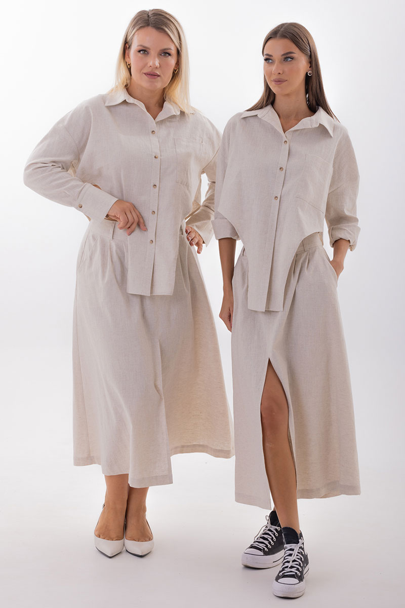 Создана для тех, кто ценит игру текстур и свободу самовыражения. Удлиненная льняная юбка от Kivvi Wear — это воплощение элегантности и лёгкости. Строгий силуэт преображается благодаря