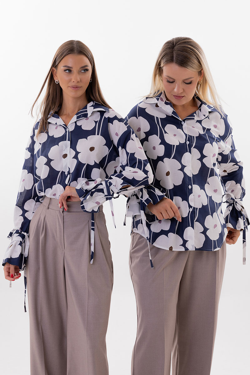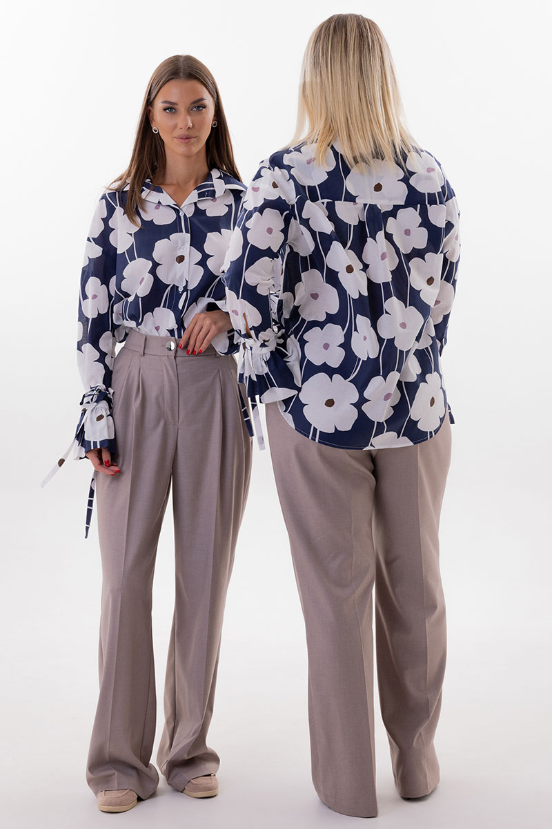 Но главная магия — в деталях. Блуза комплектуется съемными декоративными цветами из основной ткани, которые можно расположить на груди или рукавах, каждый раз создавая новый