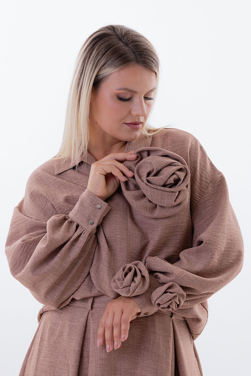Kivvi Wear представляет идеальный дуэт, где современный шик встречается с непревзойденным комфортом. Блуза свободного кроя и удлиненная юбка-трапеция — это воплощение утонченной