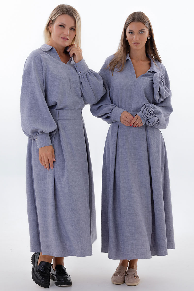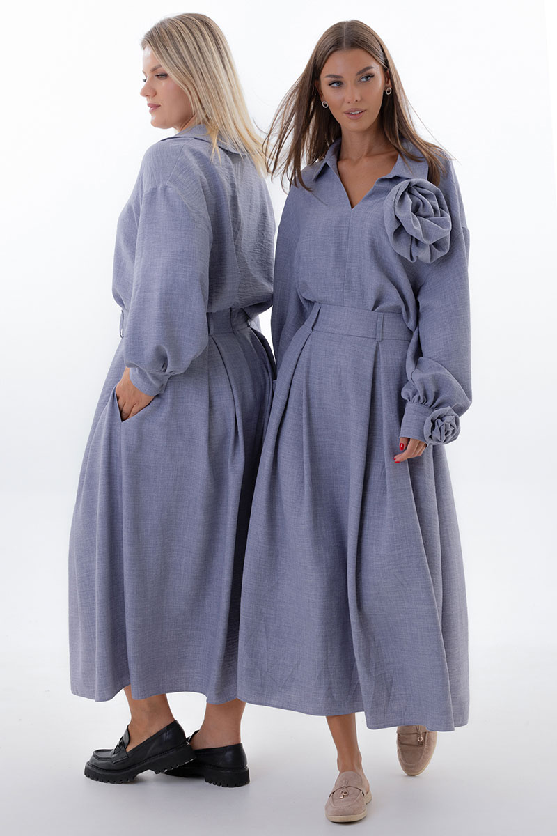 Kivvi Wear представляет идеальный дуэт, где современный шик встречается с непревзойденным комфортом. Блуза свободного кроя и удлиненная юбка-трапеция — это воплощение утонченной