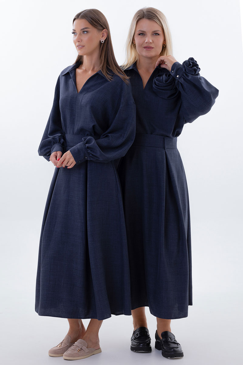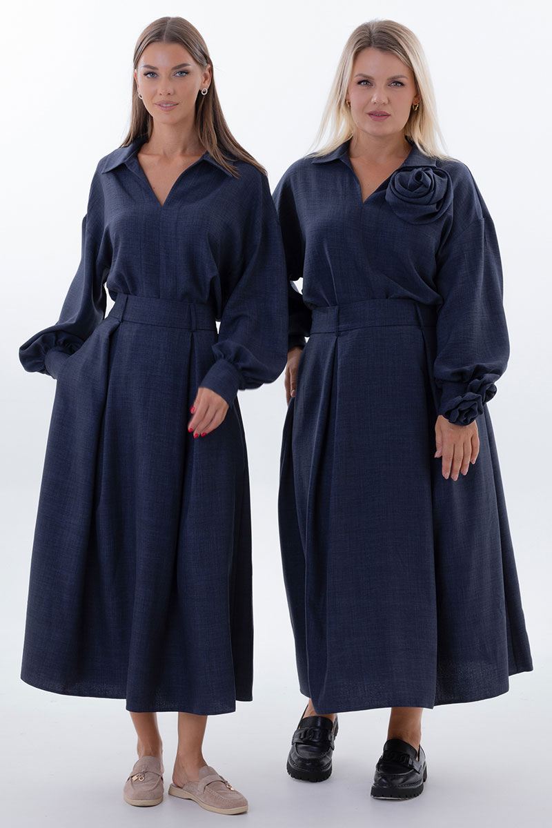 Kivvi Wear представляет идеальный дуэт, где современный шик встречается с непревзойденным комфортом. Блуза свободного кроя и удлиненная юбка-трапеция — это воплощение утонченной