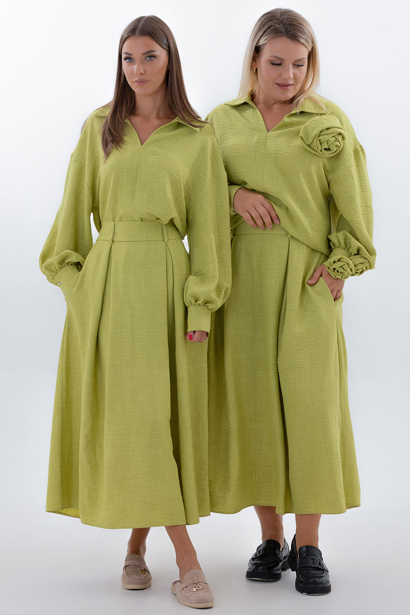 плавных линиях, несут в себе тайну и практичность, готовые хранить мелочи жизни. Встречные складки добавлют в каждый шаг нотку загадочности и элегантности. Юбка-трапеция: чарующий