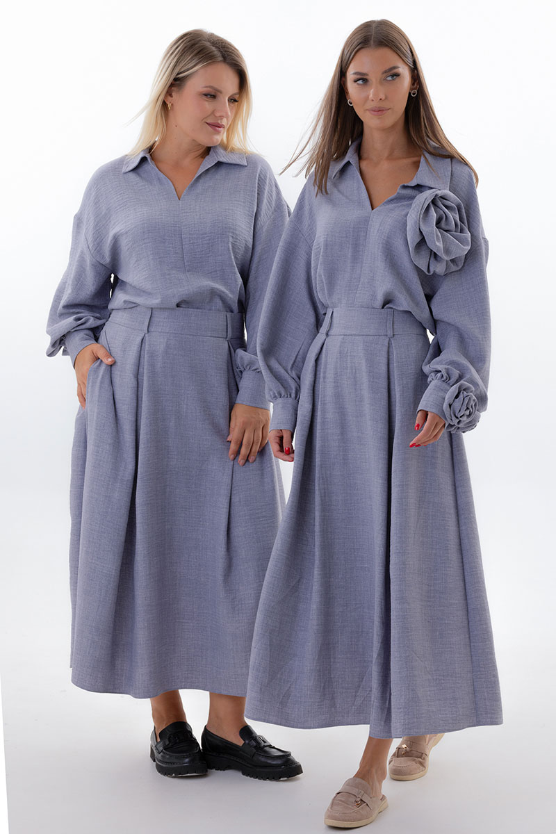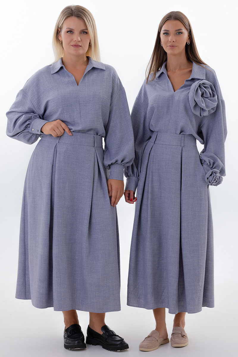 Эта удлиненная юбка-трапеция — воплощение грации и изысканности. Ее структура, будто сотканная из времени и традиций, создаёт ощущение лёгкости и свободы. Боковые карманы, скрытые в