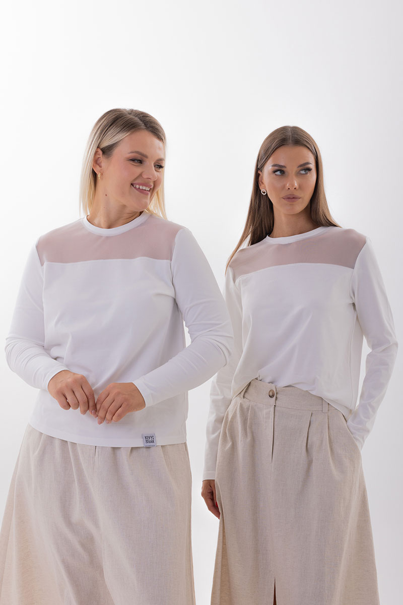 Джемпер из кулирной глади с кокеткой-сеткой Kivvi Wear — Дыхание Лёгкости