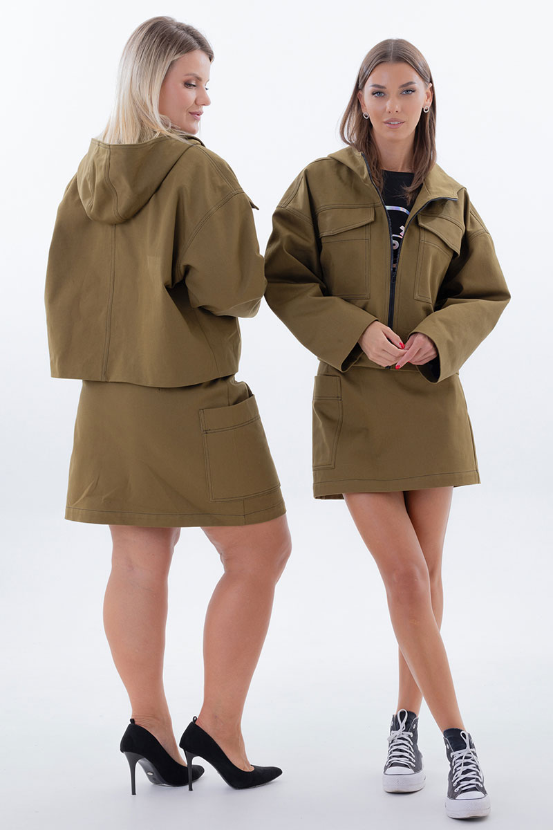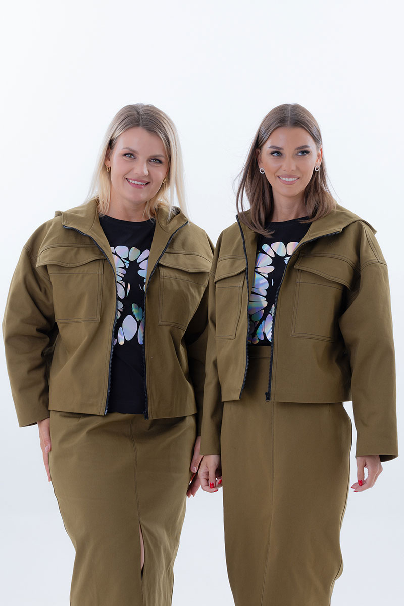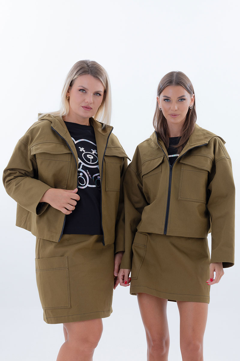 на груди добавляют утилитарности и визуального объема. Застежка-молния обеспечивает удобство и завершает лаконичный дизайн.