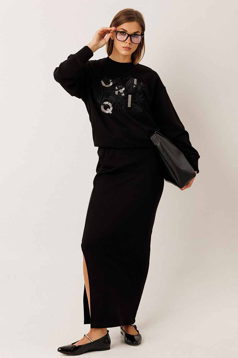 Комплект состоит из свитшота и юбки:
