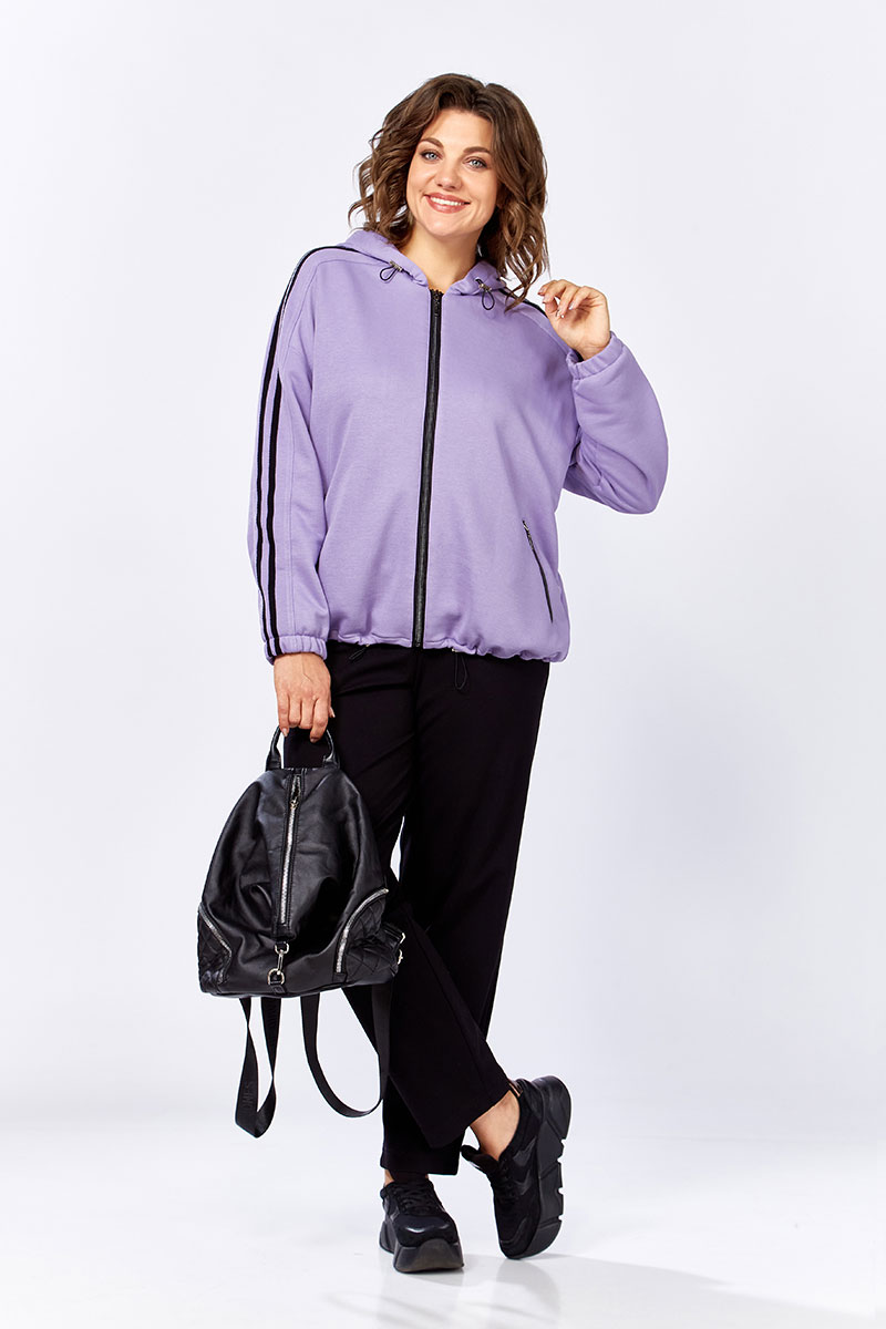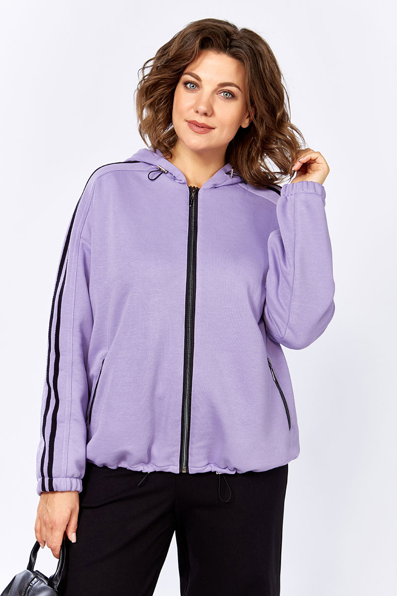 Бомбер свободного силуэта, с капюшоном, застежка молния, спереди прорезные карманы, по рукаву контрастные канты, низ регулируется кулиской.