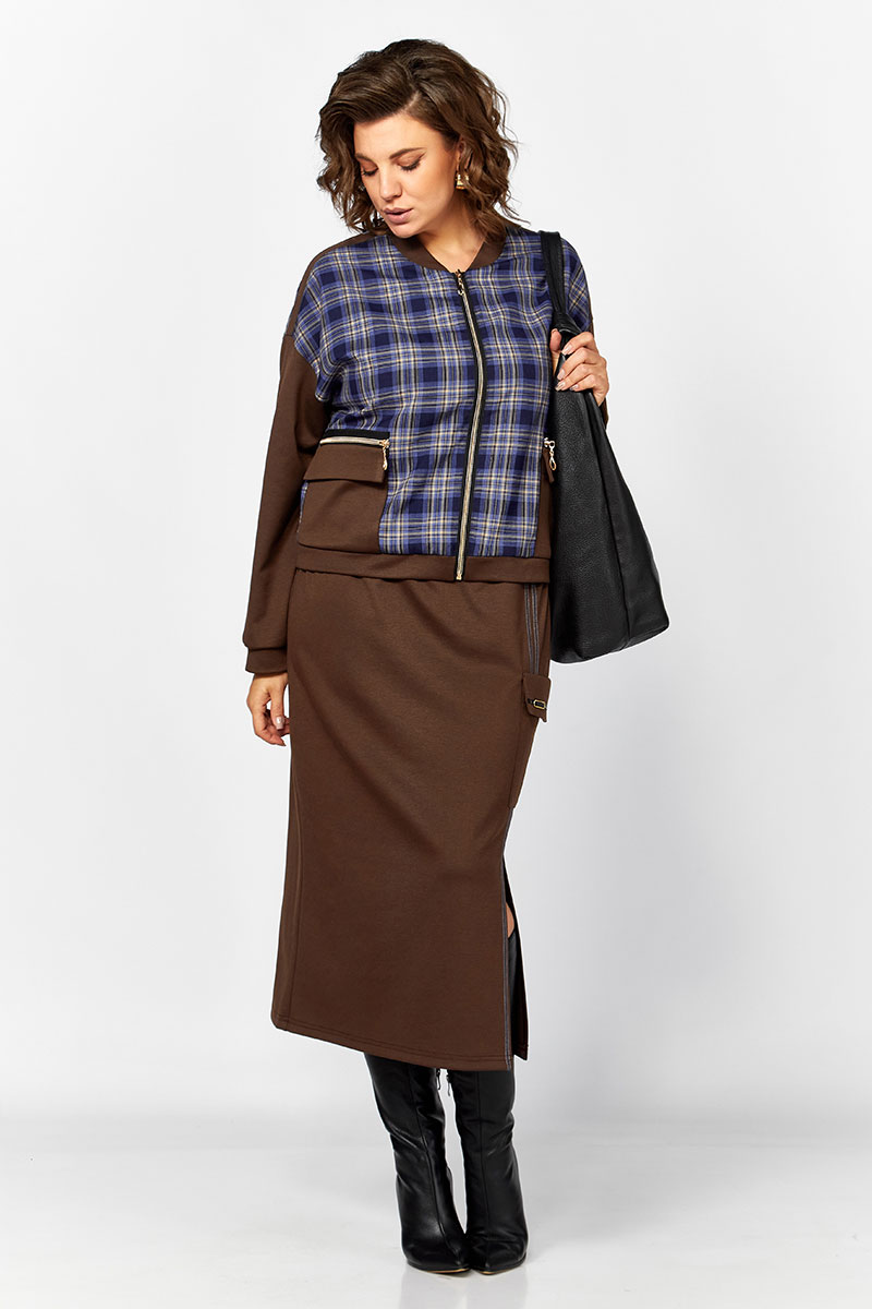 Юбочный костюм-двойка для повседневной носки ,идеальное сочетание комфорта и стиля! Модный фасон , комбинация трикотажа и текстиля, а также актуальный подбор по цвету подчеркнет ваш изысканный вкус в моде. В нем вы будете выглядеть потрясающе!