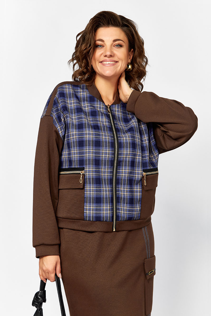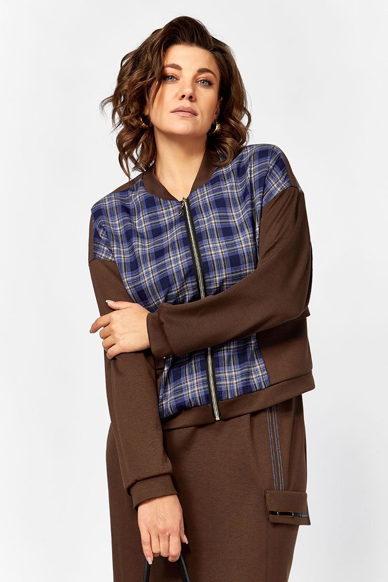 Бомбер свободного силуэта без подкладки,на молнии, с накладными карманами, воротник стойка, рукав втачной, линия плеча спущена.
