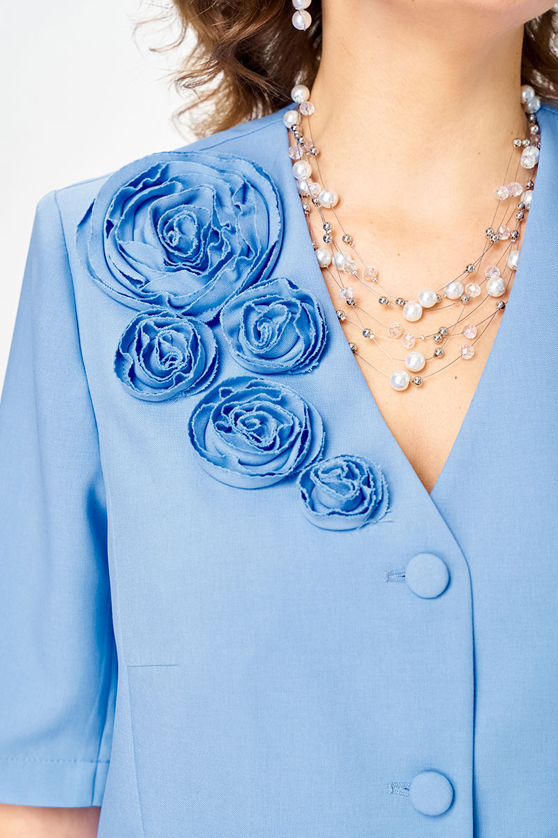 Элегантный юбочный костюм, наряд для торжественных и праздничных мероприятий. Обеспечит вашему образу максимум внимания и комплементов , благодаря безупречному подбору цвета и художественному оформлению цветочной аппликации ! Жакет без подкладкой, полуприлегающего силуэта с v образным вырезом , рукав втачной двух шовный . Юбка без подкладки, на поясе с боковыми резинками, расклешенного силуэта со складками по переду и боковыми карманами .Возможна замена фурнитуры.