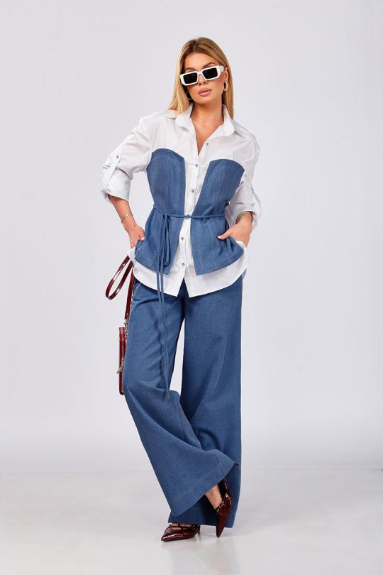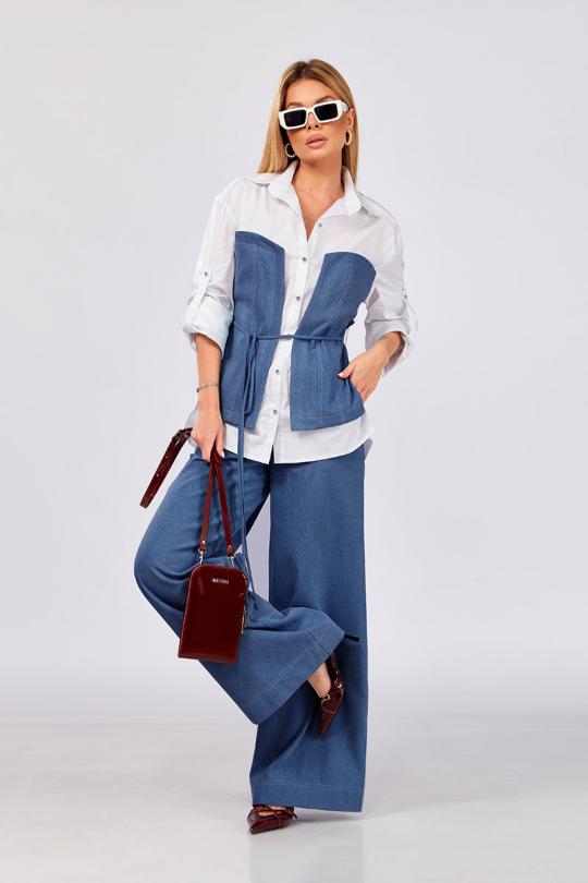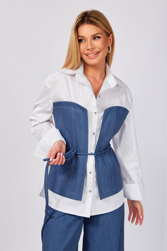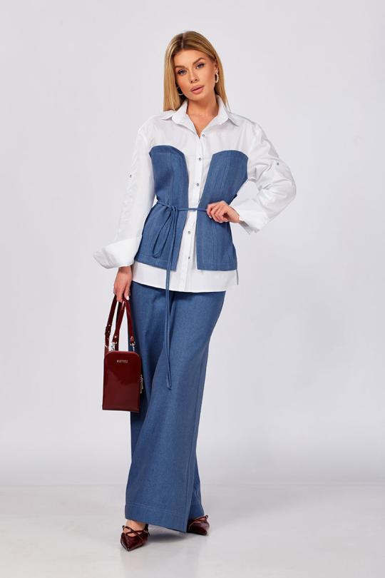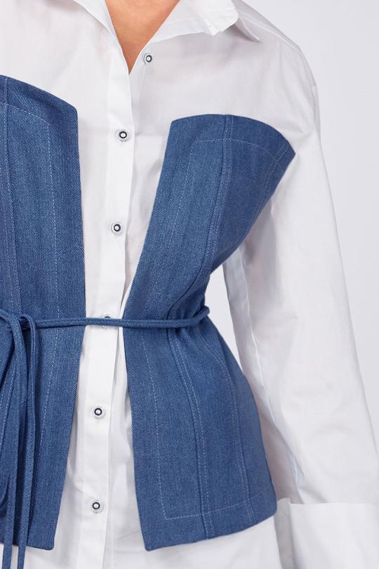 будет олицетворением вашего безупречного вкуса и стиля. Выполнен из двух натуральных хлопковых тканей, джинсовой средней плотности и рубашечной.