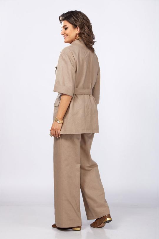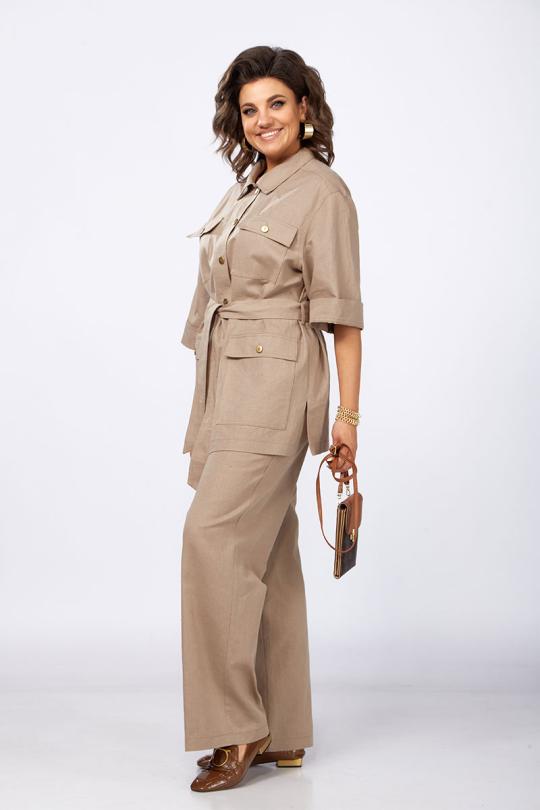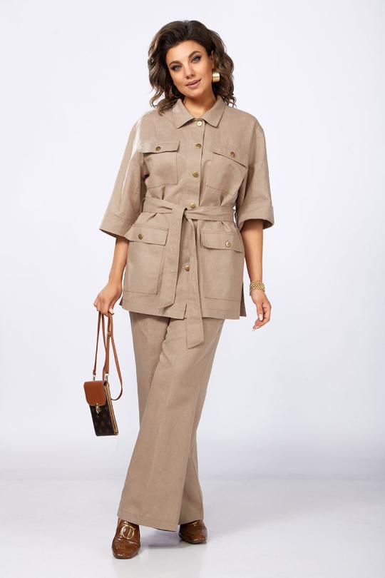 Летний брючный костюм в стиле сафари из костюмной ткани лен-вишер.