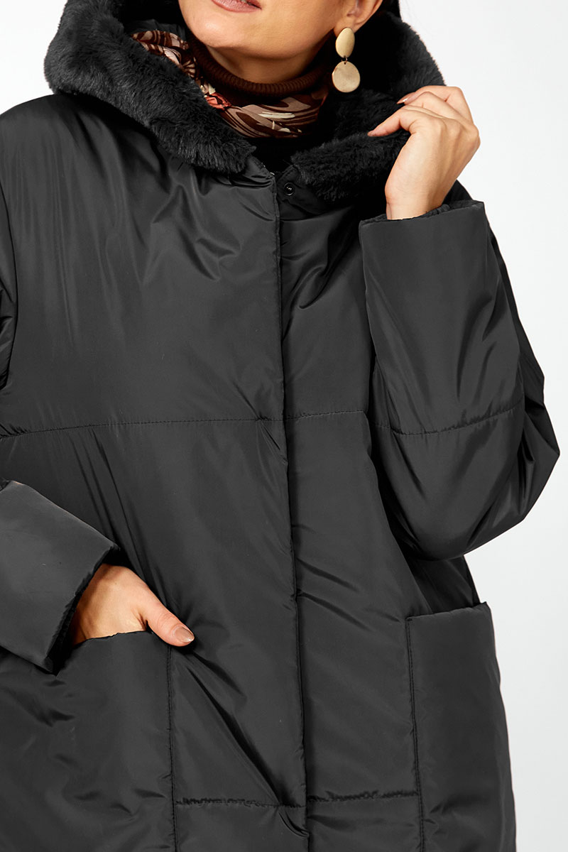 барьер. Пальто имеет прямой слегка расслабленный крой, глубокий капюшон с роскошной меховой отделкой создает эффект мягкого обрамление лица и защищает от ветра и снега. Функциональные