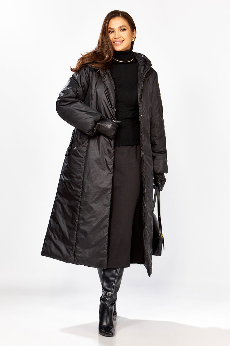 Зимнее стеганое пальто из ткани лакке - союз блеска и практичности. Элегантное, стильное, сочетающее себе комфорт и удобство. А-образный крой мягко формирует линию силуэта, создавая