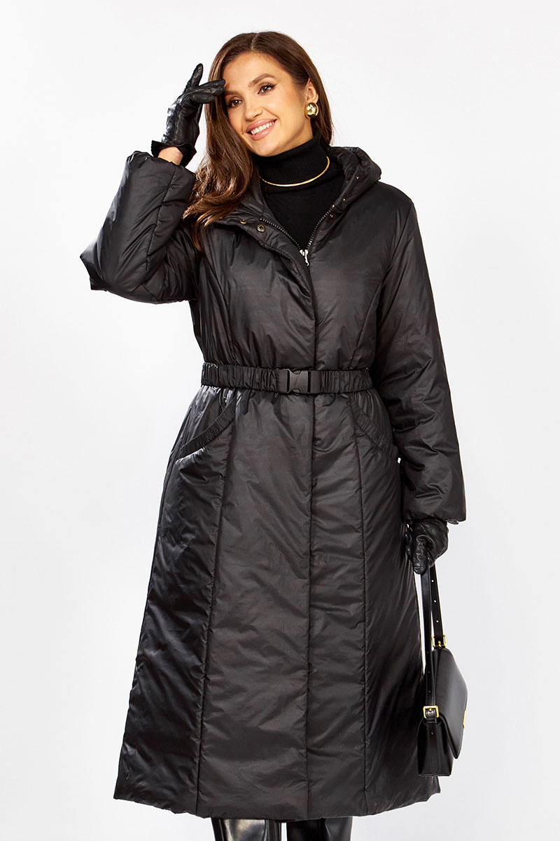 Пальто оснащено капюшоном, застёжкой-молнией и потайными кнопками, что делает его функциональным и защищённым от ветра. Пояс акцентирует талию, придавая фигуре изящество. Современная