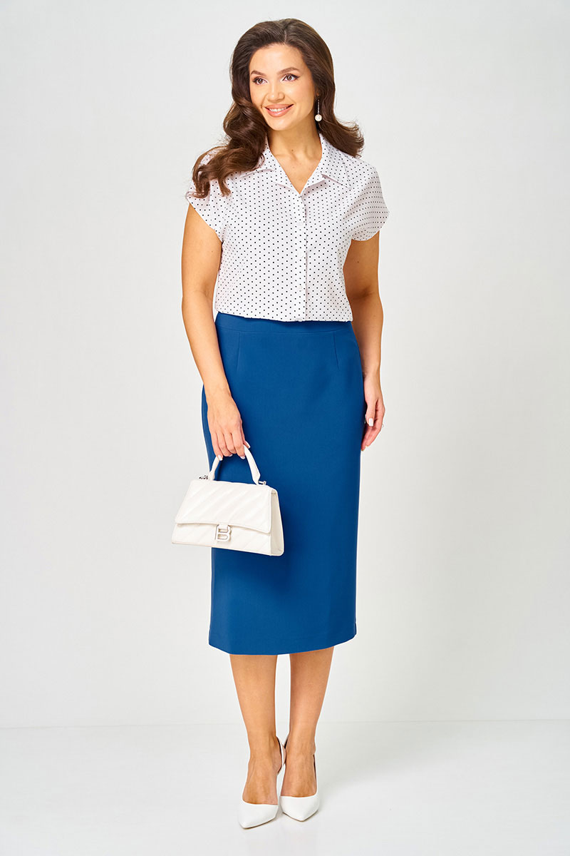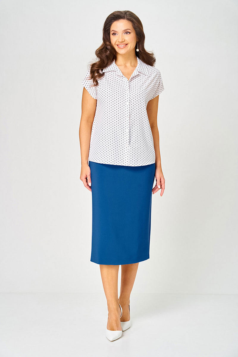 Комфортная и лёгкая блузка выполнена из струящейся, тонкой ткани. Блузка свободного прямого силуэта со спущенной линией плеча. Воротник отложной.Застежка центральная на петли и пуговицы.