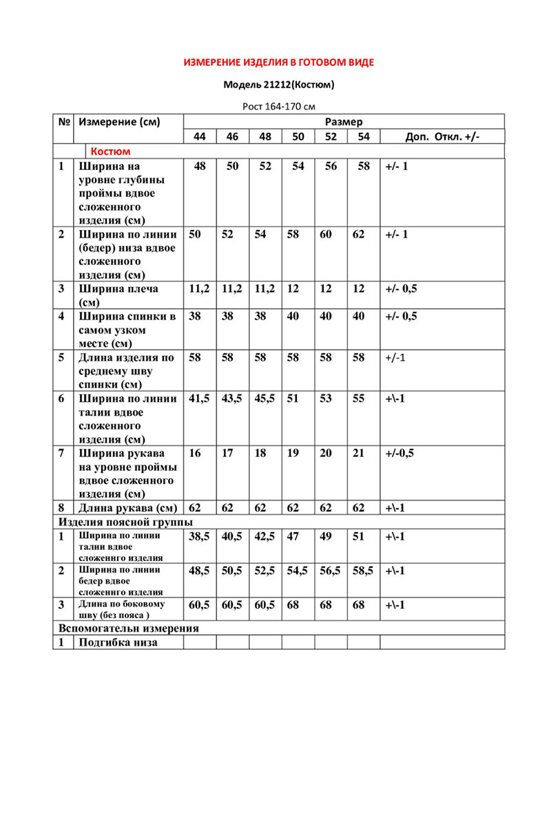 Юбка на подкладке, зауженная к низу с притачным поясом и на резинке в размерах 50-60. Застежка в юбке на потайную тесьму-молнию в среднем шве заднего полотнища и шлицей.