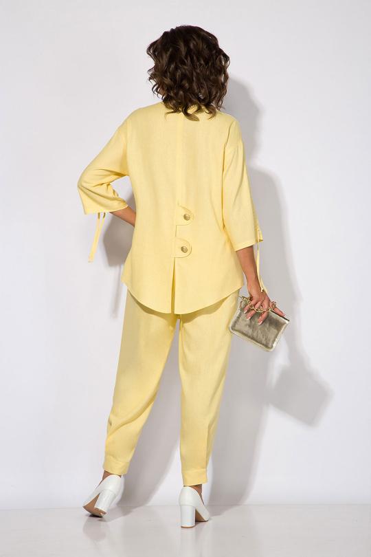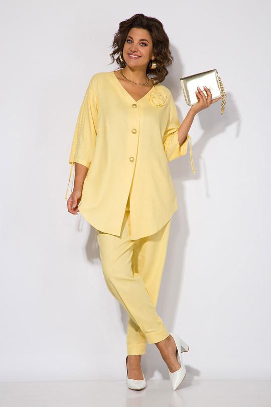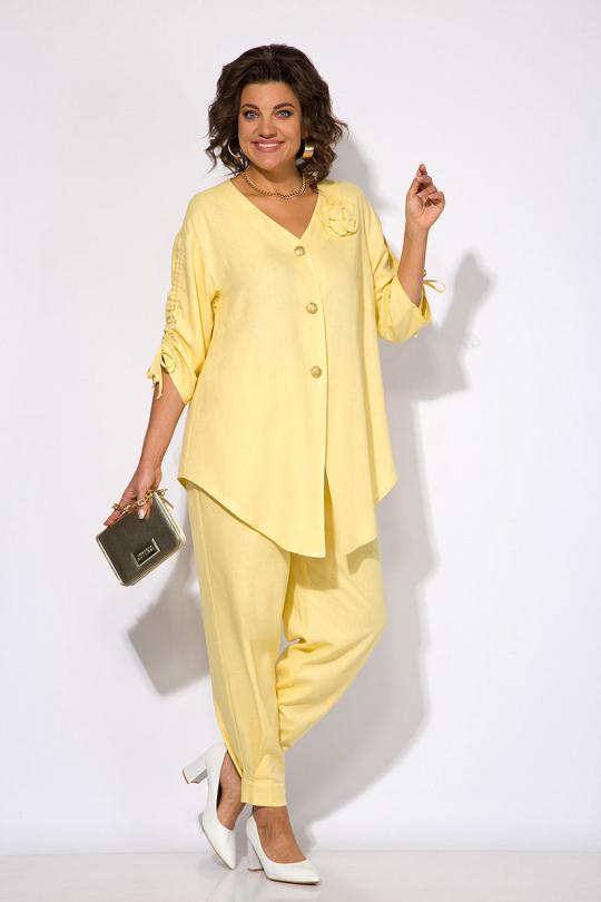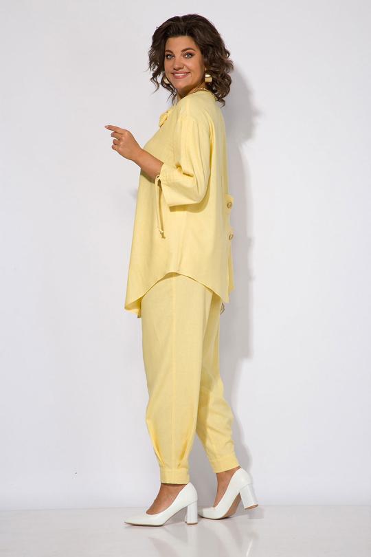 Эффектный летний костюм, из натурального льна с добавлением вискозы; состоит из свободной блузки и брюк.