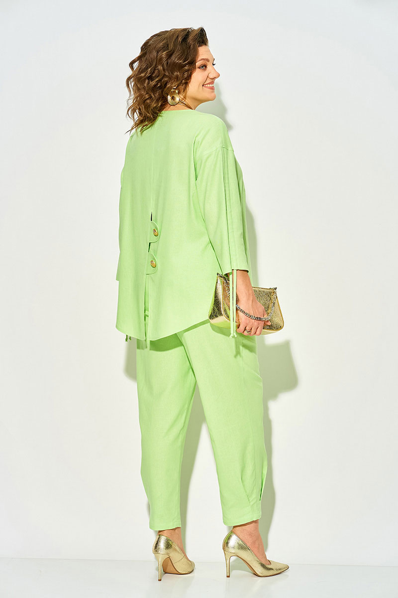 Эффектный летний костюм, из натурального льна с добавлением вискозы; состоит из свободной блузки и брюк.