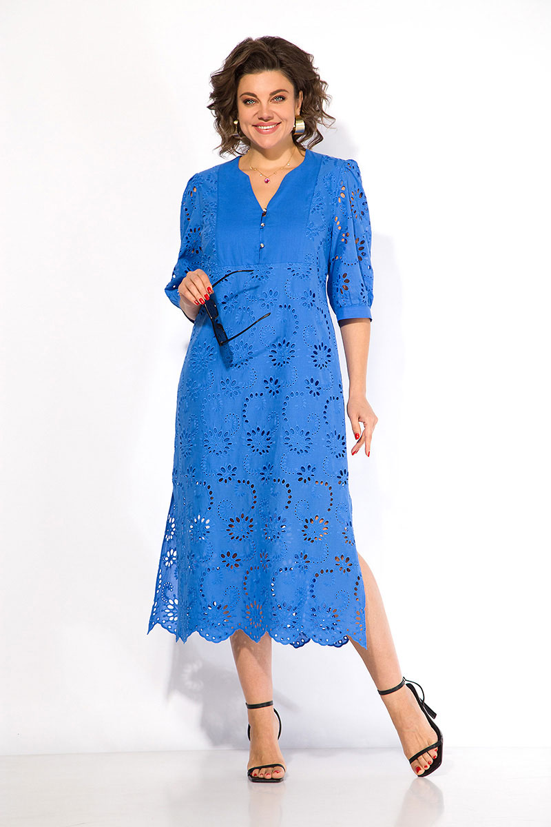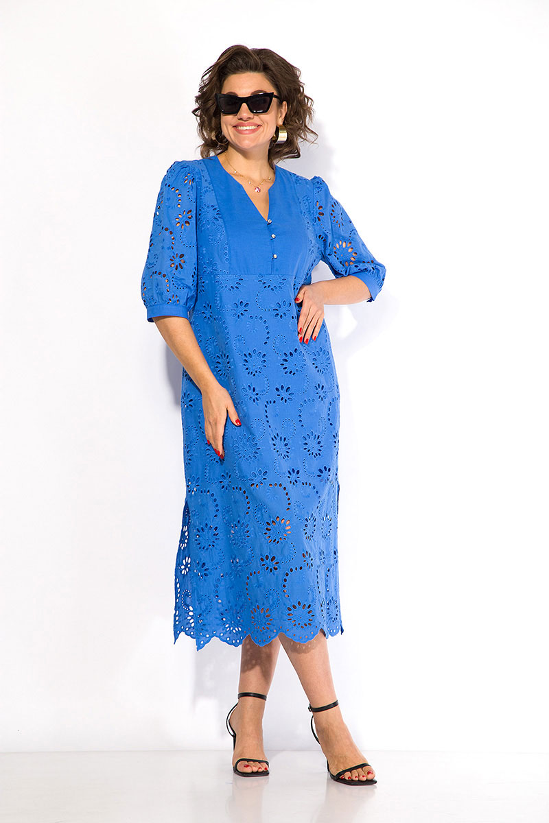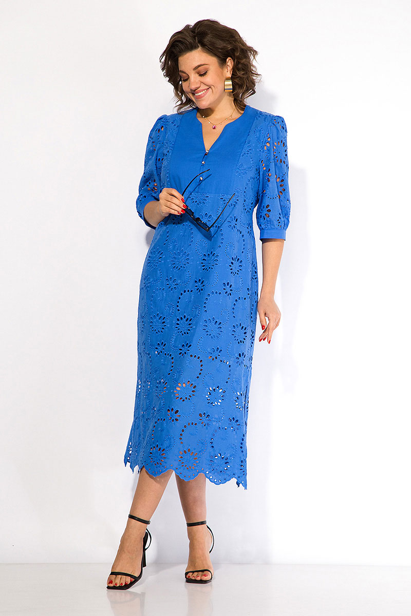 Красивое хлопковое платье не оставит вас без внимания окружающих! Не нужно ждать особого случая, чтобы надеть такой наряд, ведь он всегда в тренде! Модель полуприлегающего силуэта, длиной миди. По бокам предусмотрены разрезы для свободы движения. Рукав вточной, слегка присборен по окату, по низу обработан притачным манжетам с застежкой на пуговицу. Лиф с декоративной кокеткой из основной ткани с v-образным вырезом горловины и декоративной застежкой на навесные петли с пуговками. Спинка без особенностей. Платье поставлено на подкладку из 100% хлопка тон в тон.