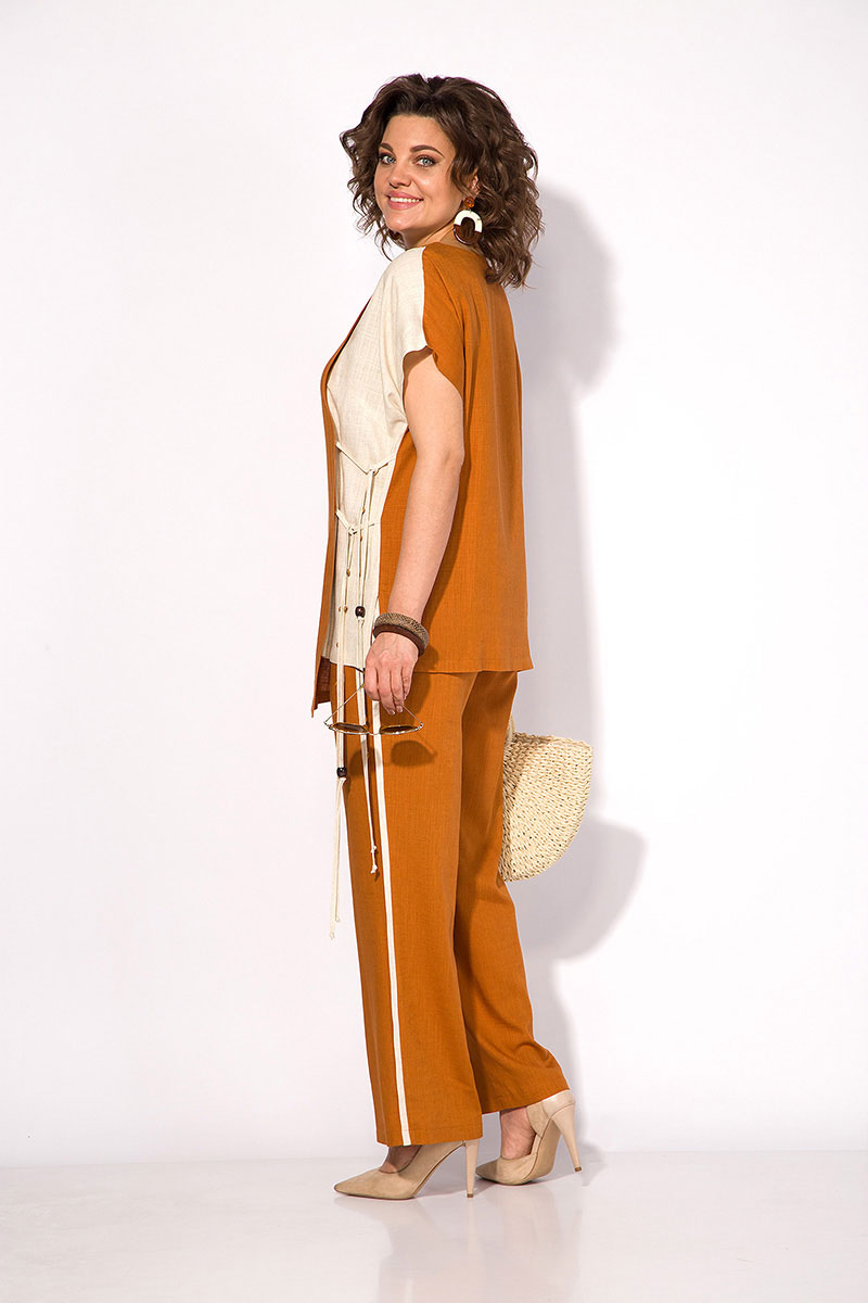 Представляем вам шикарный женский льняной костюм, который станет идеальным дополнением для весеннего и летнего сезона. Этот костюм включает в себя легкую ассиметричную блузку и широкие брюки с лампасами, что делает его не только стильным, но и очень удобным для повседневного ношения.