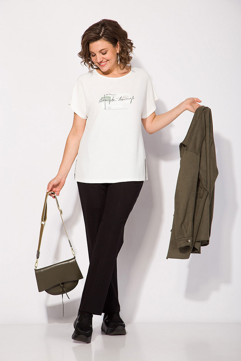 В комплекте топ на спущенном цельнокроеном рукаве с округлым вырезом горловины. Лиф украшает печать накат в тон изделия.