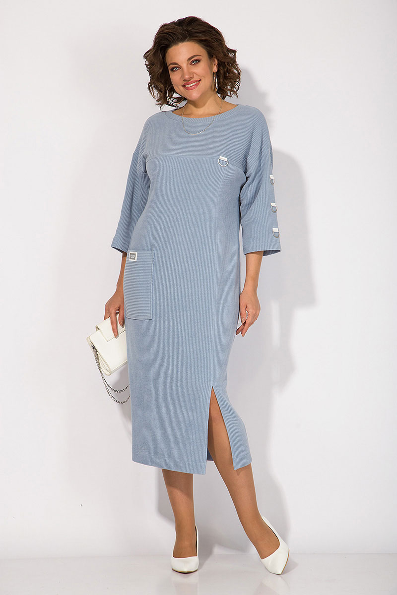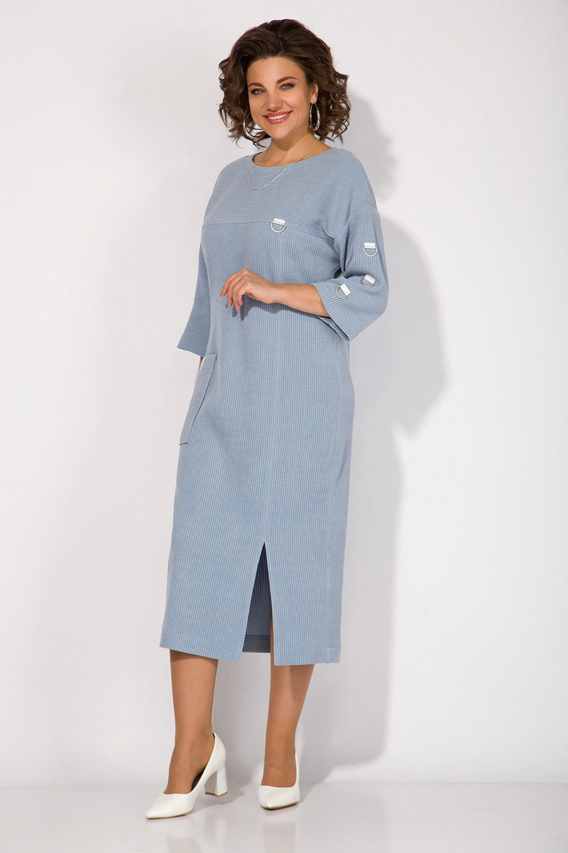 Эффектное платье выполнено из трикотажного штрукса, создано для тех, кто ценит комфорт в повседневной жизни. Модель полуприталенного силуэта со спущенной линией плеча. Рукав длиной3/4-ти украшает ряд декоративных полуколец. Вырез горловины округлый, на мягкой планке. Полочка с отрезной кокеткой и ассиметричным рельефом, переходящим в разрез на свободу движения. Ассиметричный накладной карман украшает декоративная нашивка.