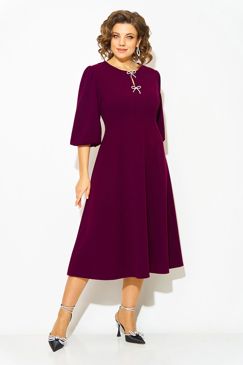 Волшебное и неповторимое - это женское платье с округлым вырезом горловины, созданное талантливым дизайнером олицетворяет элегантность и стиль. Выполненное из трикотажного крепового материала, это платье обеспечивает комфорт и свободу движений. Модель отрезная по линиям талии, с продольными рельефами по полочке. Юбка расклешена к низу – полу солнце. Эффектный рукав-фонарик длиной ¾-ти, присборен по окату и поставлен на трикотажную подкладку. Небольшая капелька по лифу крашена съёмными брошами в виде банта. Застежка – потайная тесьма-молния по спинке.