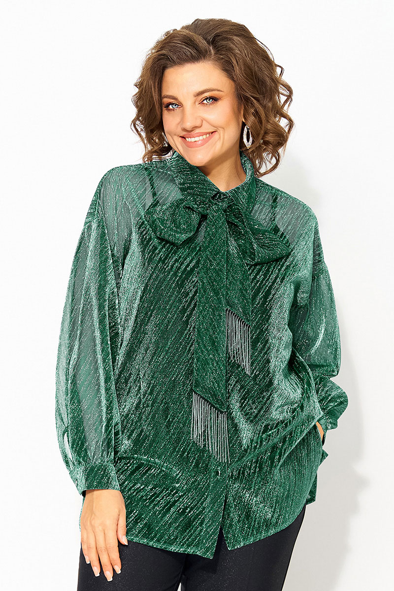 Трендовая блузка из легкой сетчатой ткани c эффектом мерцания станет стильным дополнением вашего гардероба. Ее можно комбинировать с различными элементами гардероба, накинуть поверх платья или топа. Модель выполнена с воротником-стойкой, который добавляет элегантности образу. Застежка центральная на петли и пуговицы. По бокам расположены разрезы. Свободный крой обеспечивает комфорт и подчеркивает женственность. Длинный рукав с манжетами делает ее универсальной для любого сезона, а удлиненный силуэт добавляет изысканности. В комплект входит съёмный пояс с декоративной бахромой, который может служить в виде шарфика и добавить элегантность образу.