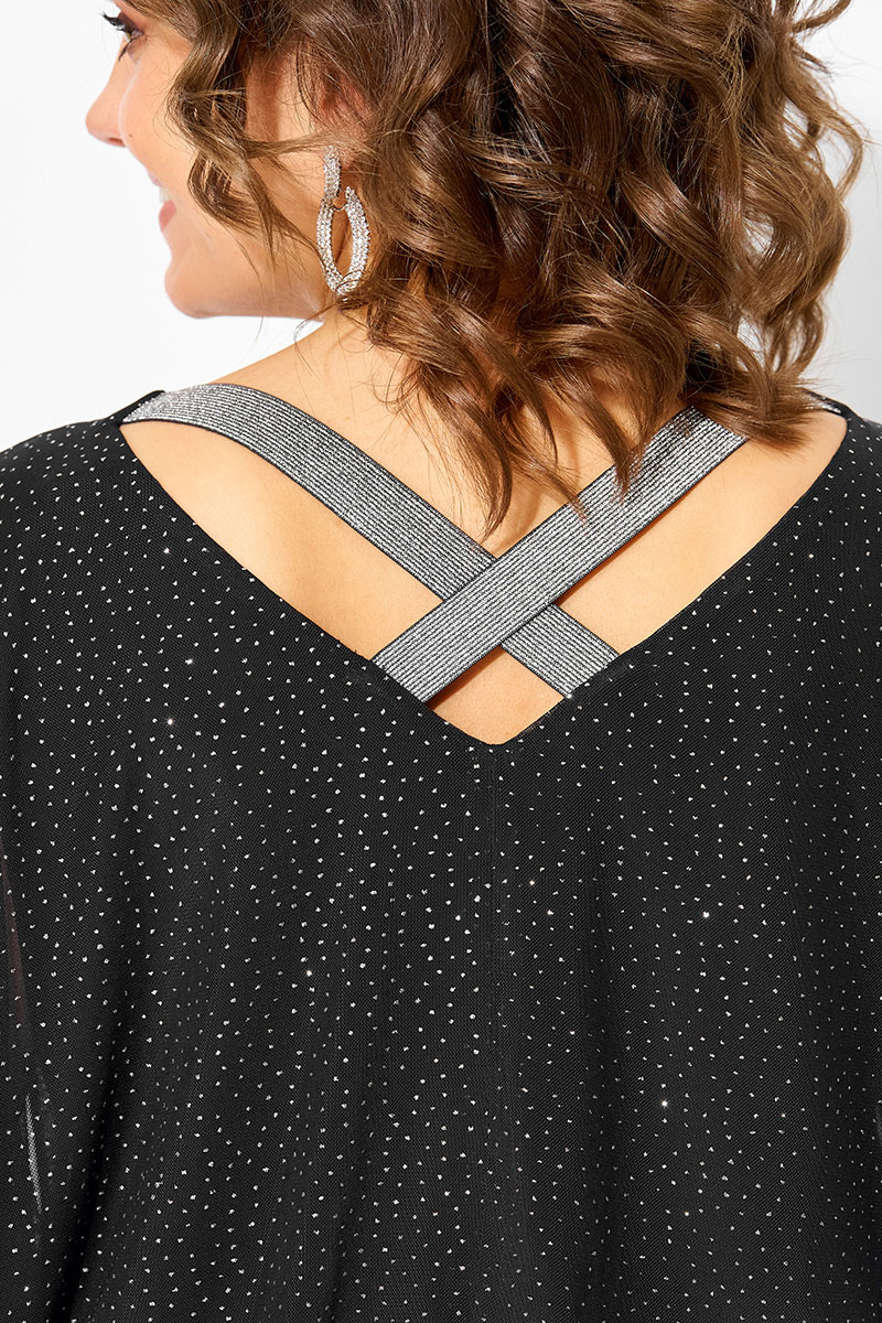 Эта модная женская блуза отличается уникальным стилем бохо и нарядным настроением, а прозрачный рукав  с мерцающим эффекутом добавляет легкости и особого шарма. Объемный цельнокроеный рукав делают ваш наряд эффектным, женственным и привлекательным. Округлый вырез горловины по полочке заложен в мягкие складки. Низ присборен и оформлен  мягкой трикотажной притачной планкой. Подкладка выполнена из мягкого трикотажа, садится точно по фигуре. Изюминкой данной модели служит эффектный вырез на спине с декоративной резинкой с мерцающим эффектом.  Выбирая эту блузку, вы выбираете стиль, универсальность и возможность всегда быть в центре внимания. Добавьте её в свой гардероб, чтобы создать образы, которые будут вдохновлять и восхищать!