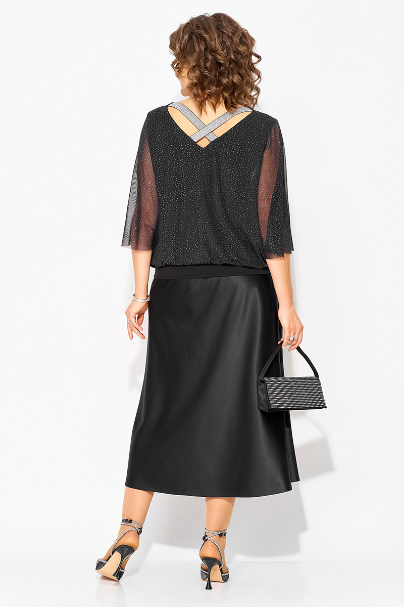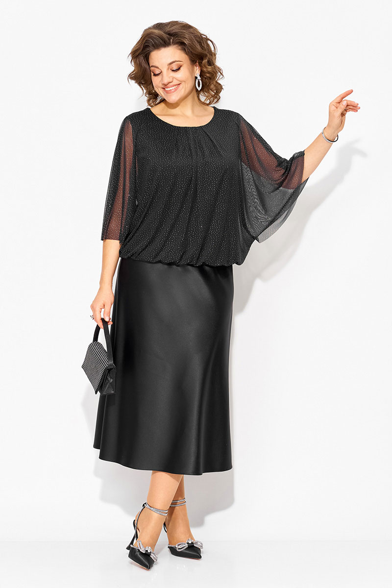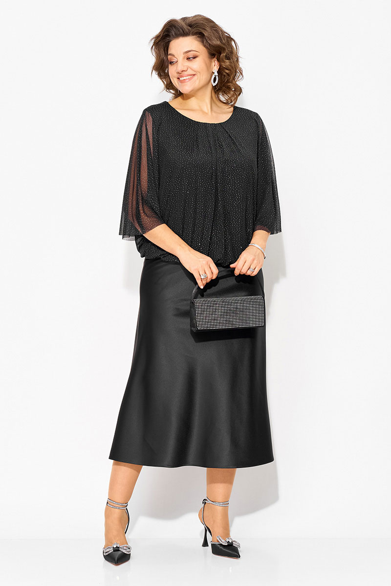 - Состав: блуза: вискоза 50%; ПЭ 45%; спандекс 5%; юбка: ПЭ 95%; спандекс 5%