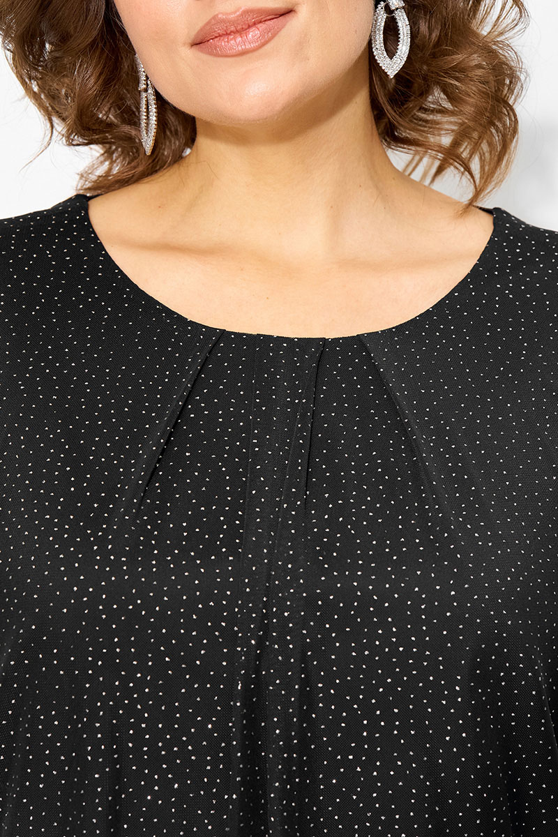 Эта модная женская блуза отличается уникальным стилем бохо и нарядным настроением, а прозрачный рукав с мерцающим эффектом добавляет легкости и особого шарма. Объемный цельнокроеный рукав делают ваш наряд эффектным, женственным и привлекательным. Округлый вырез горловины по полочке заложен в мягкие складки. Низ присборен и оформлен мягкой трикотажной притачной планкой. Подкладка выполнена из мягкого трикотажа, садится точно по фигуре. Изюминкой данной модели служит эффектный вырез на спине с декоративной резинкой с мерцающим эффектом.