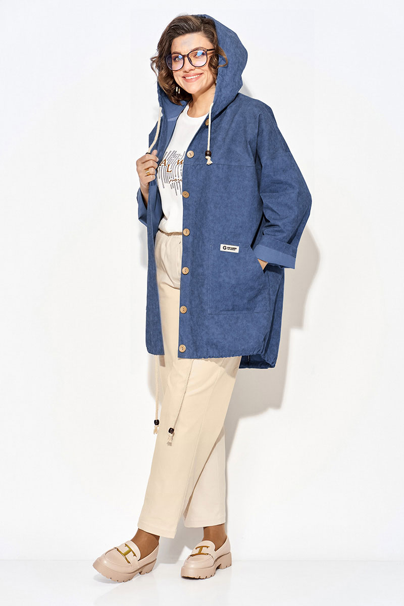 Женская джинсовая парка-ветровка, выполнена из 100% хлопка с эффектом водоотталкивающей пропитки. Удлиненная джин совка силуэта оверсайз очень практична и удобна, смотрится необычно и элегантно. Модель с объемным капюшоном является очень популярной в предстоящем сезоне. Застежка центральная на петли и пуговицы. Рукав длинный на спущенном плечевом поясе обеспечивает идеальную посадку по фигуре. По полочке расположена кокетка и накладные карманы с отделочными строчками. Спинка с центральным швом, переходящим в разрез. Низ изделия фигурный с утяжкой на шнуровку с наконечниками.