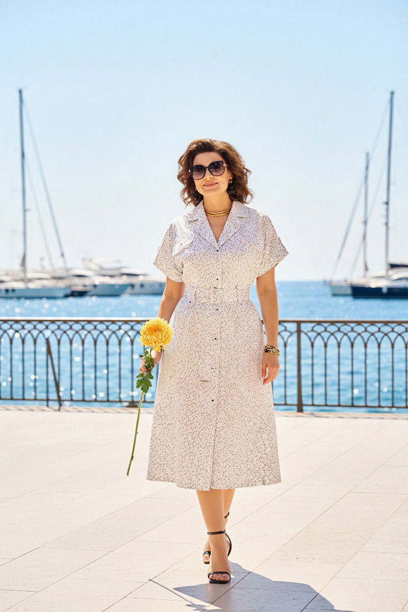 Эффектное платье в стиле сафари, идеальный выбор для жарких будней и не только! Модель трапециевидного силуэта, с аккуратным отложным английским воротником. Застежка центральная, на петли и пуговицы с подбортом. Линия плеча спущена, переходит в цельнокроеный рукав с отрезными манжетами. Предусмотрены декоративные паты на рукавах и поясе! Платье с боковыми карманами. В комплект входит съемный пояс с роговой пряжкой в тон пуговиц. Модель доступна в больших размерах и подойдет для высоких и невысоких девушек. Это отличный вариант для повседневной носки, нарядного случая, а также для женщин, ценящих комфорт, элегантность и стиль.