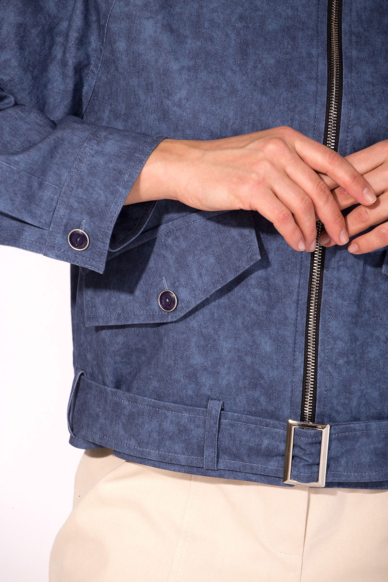 Модель силуэта оверсайз, с длинным свободным рукавом покроя реглан. Воротник отложной. Застежка центральная на молнию с дополнительной планкой. По полочке расположены прорезные карманы с клапаном. Рукав длинный, на притачной манжете с застежкой на пуговицу. Спинка с центральным швом, по низу заложены складки. По низу изделия, спереди расположен декоративный пояс с пряжкой для более комфортного прилегания. Модель на шелковой подкладке.