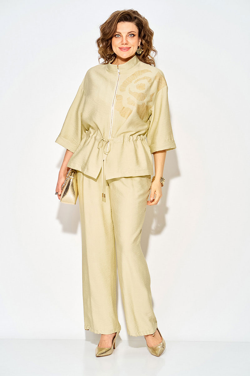 Брючный костюм от производителя «ЛИЛИАНА»- это идеальный выбор для комфортного и стильного образа в весенне-летнее время года. Сшит из вискозного полотна, он приятен к телу и позволяет коже дышать. Модель выполнена в свободном "Оверсайз" (свободный/объемный крой) покрое, что обеспечивает максимальный комфорт и свободу движений. Блузон со спущенной линией плеча и рукавом длиной 3/4ти с манжетами на отворот. Воротник свободная стойка; застежка центральная на металлическую молнию. По талии расположена кулиска со шнуровкой для более комфортного прилегания. По бокам блузона предусмотрены разрезы. Лиф украшает абстрактная печать-накат с золотым напылением. Брюки в костюме средней посадки, на притачном поясе с круговой резинкой. Модель с боковыми карманами. По низу брюк предусмотрена утяжка, благодаря ей брюки трансформируются в модные «султанки» – ХИТ весенне-летнего сезона 2026 года!