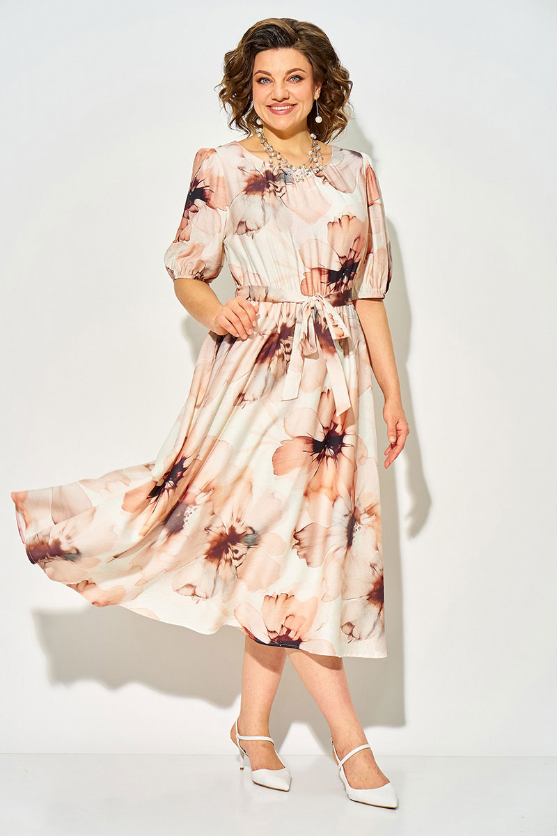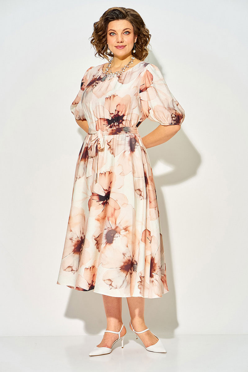 Женское платье длиной миди - выбор для девушек, которые хотят стильный и красивый образ на любое торжество. Это нарядное изделие подчеркнет индивидуальность и добавит легкое настроение весны и лета в ваш гардероб. Модель платья отрезное по талии с округлым вырезом горловины. По линии лифа и талии выточки перенесены в легкую сборку. Юбка в модели расклешена к низу. Рукав вточной, укороченный со сборкой по окату и низу рукава на эластичную резинку. Спинка с центральным швом и застежкой на навесную петлю с пуговкой. Юбка на подкладке.