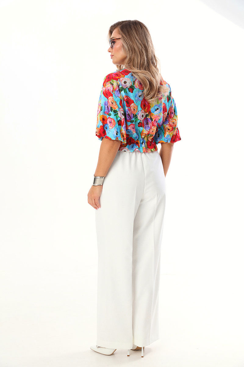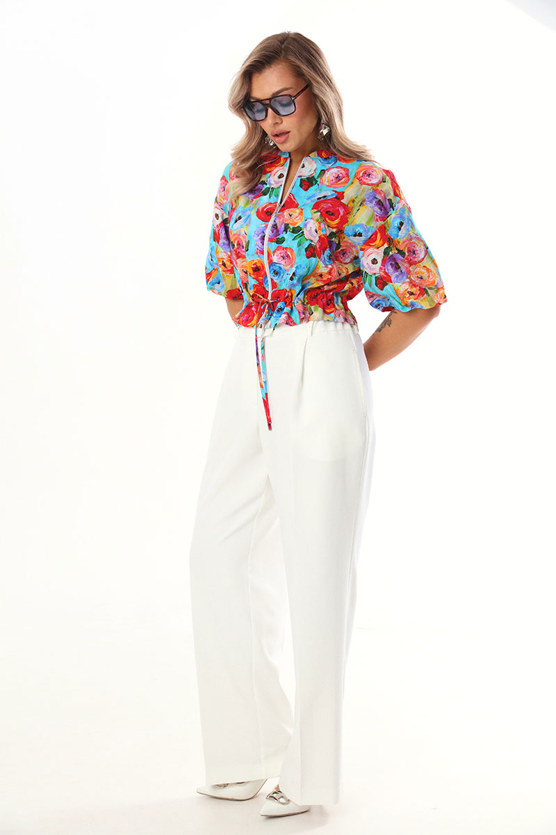- Состав: блуза: вискоза 100%; брюки: ПЭ 64%; вискоза 33%; эластан 3%