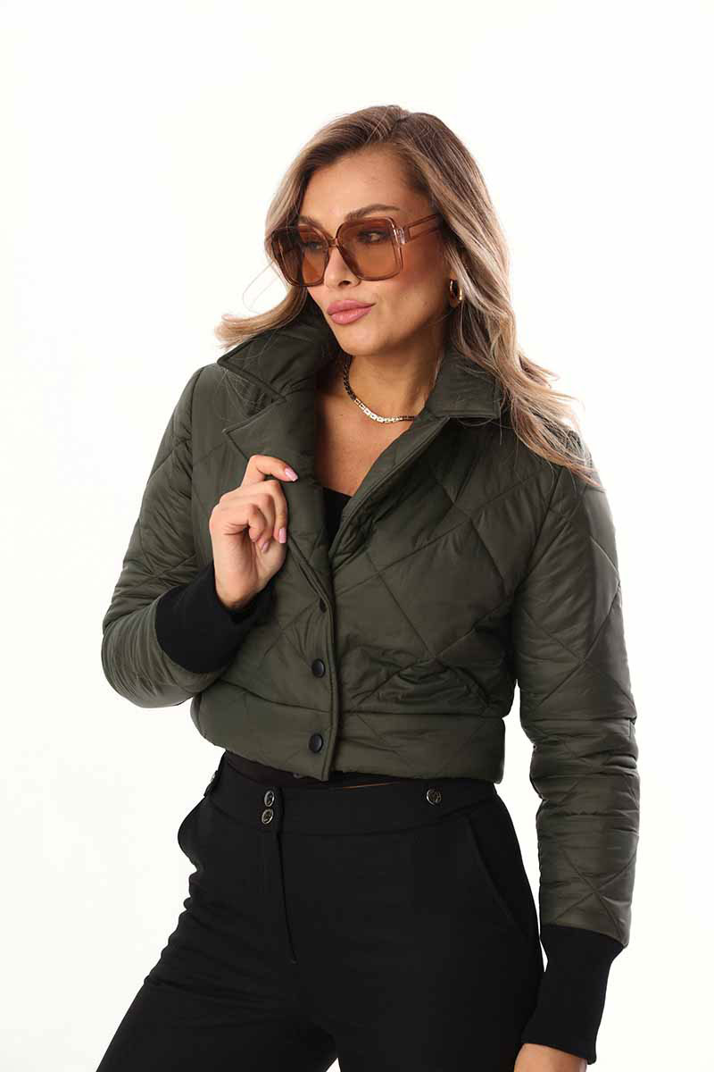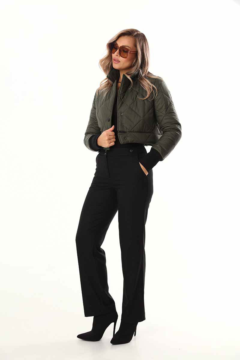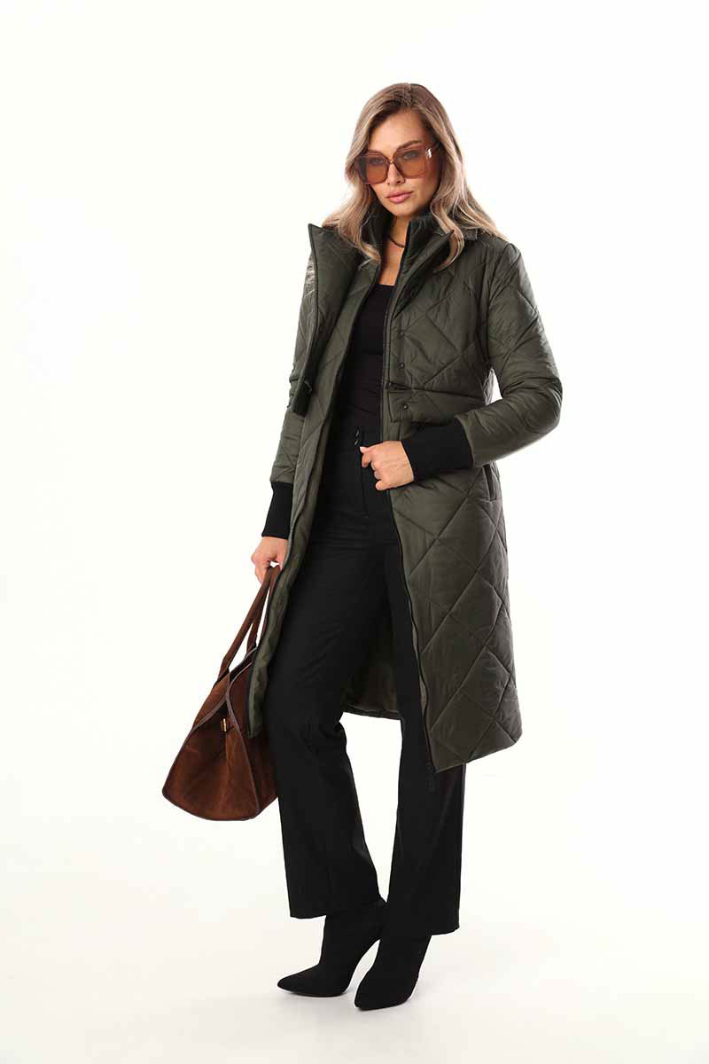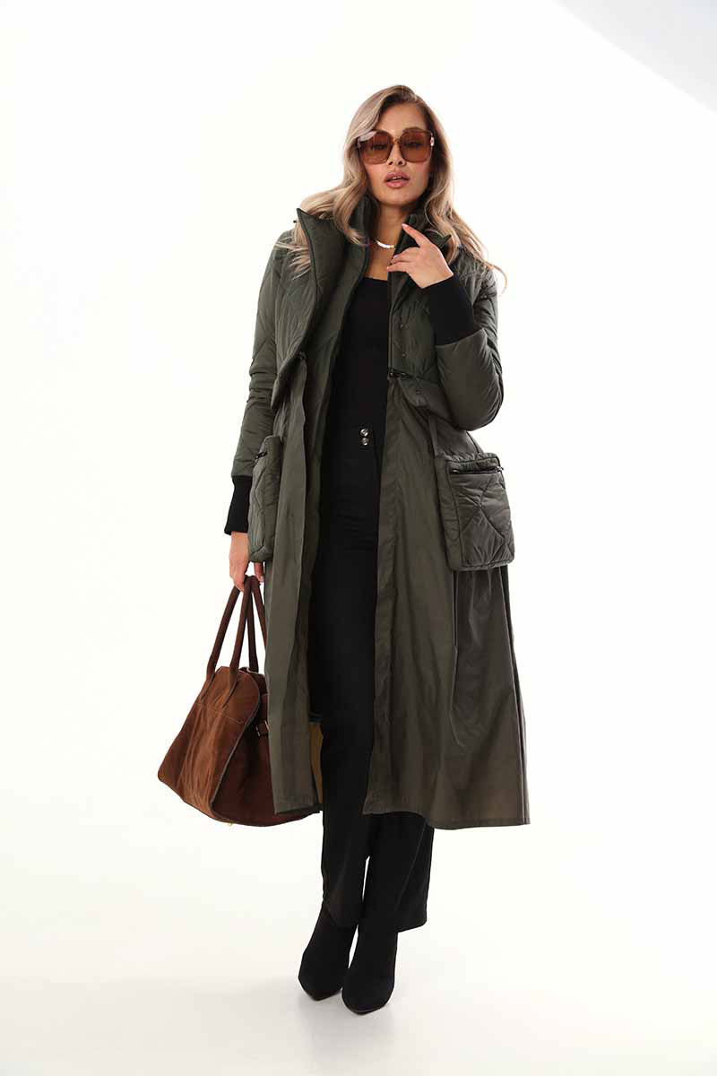 Верхний слой комплекта составляет укороченная куртка с застёжкой на кнопки в сочетании с объёмной юбкой длины миди из тонкой плащевой ткани. Юбка съёмная, пристёгивается к куртке на молнию, что позволяет носить куртку как отдельный элемент одежды. Куртка также дополнена съёмными карманами-сумочками с застёжкой на молнию. Нижний слой состоит из удлинённого жилета на молнии с карманами и воротником-стойкой.