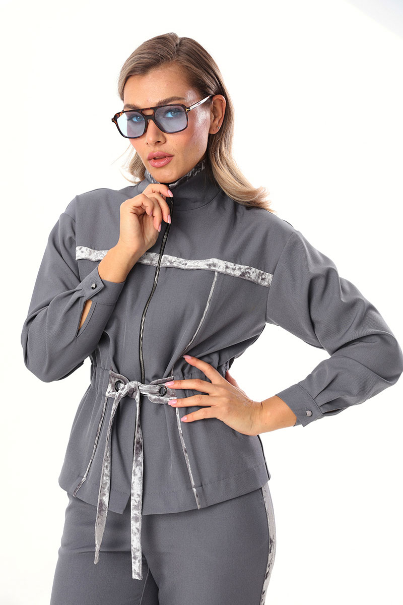 Рубашка с застёжкой на молнию и воротником - стойкой. По талии рубашки расположена кулиса и шнурок для приталивания. Декоративные элементы по переду рубашки и шнурок выполнены из велюра. Манжеты на пуговицах.