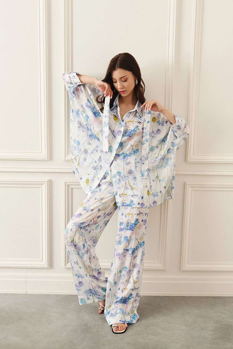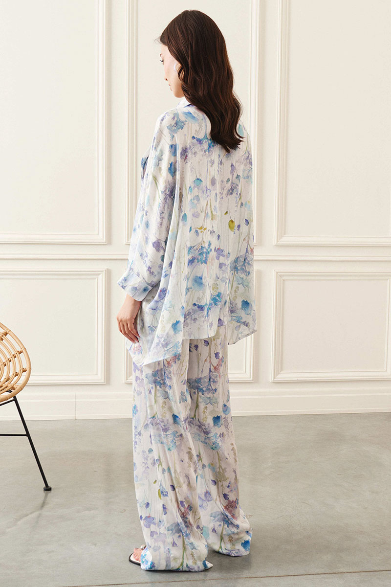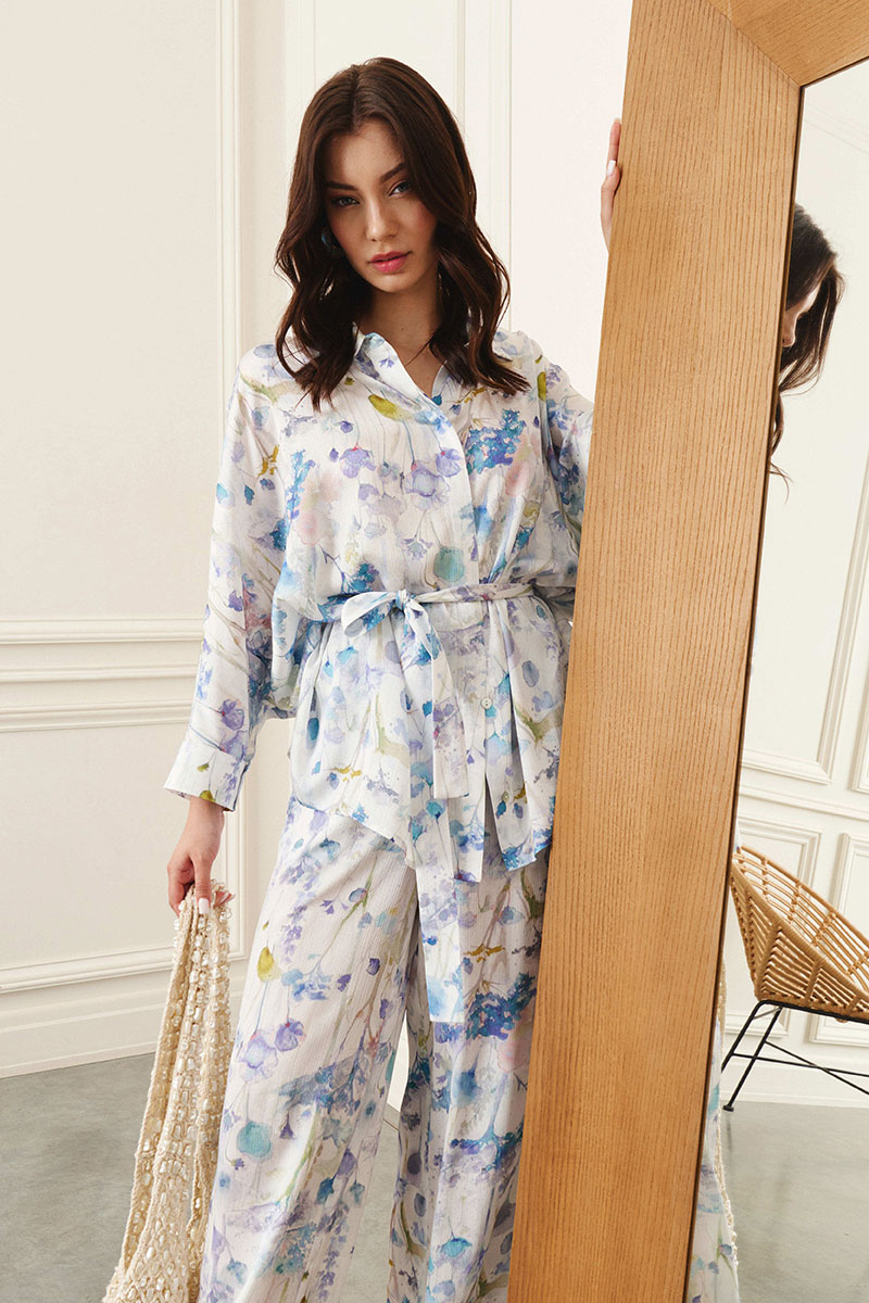 Брюки широкие, пояс на резинке, в боковых швах карманы.