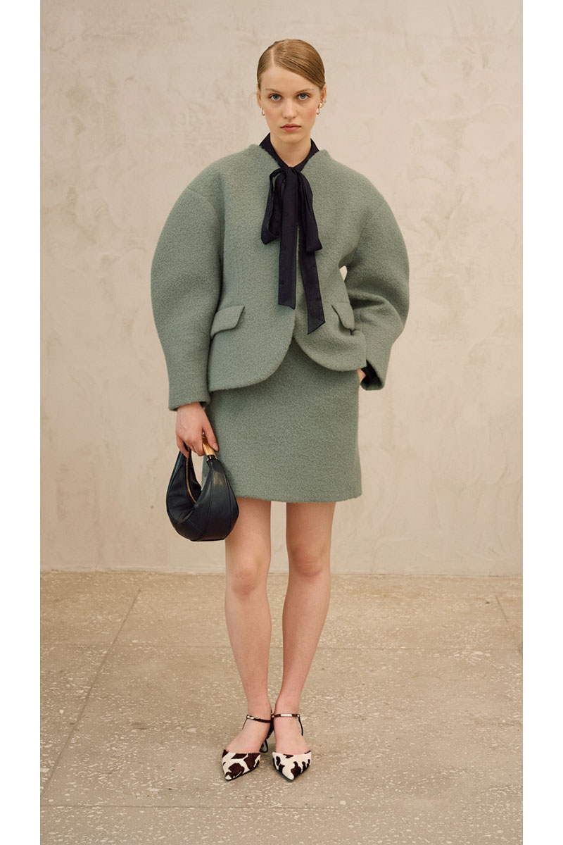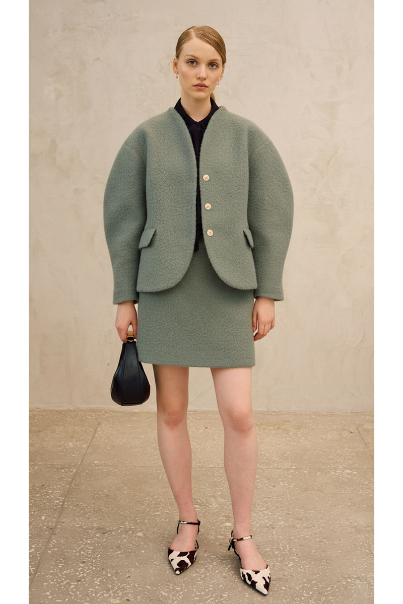 Комплект состоит из полупальто и юбки.