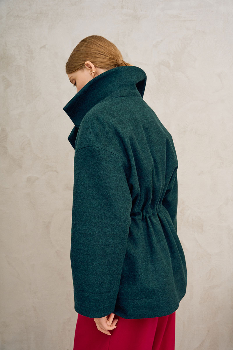 Длина пальто по спинке от высшей точки горловины: 77 см.