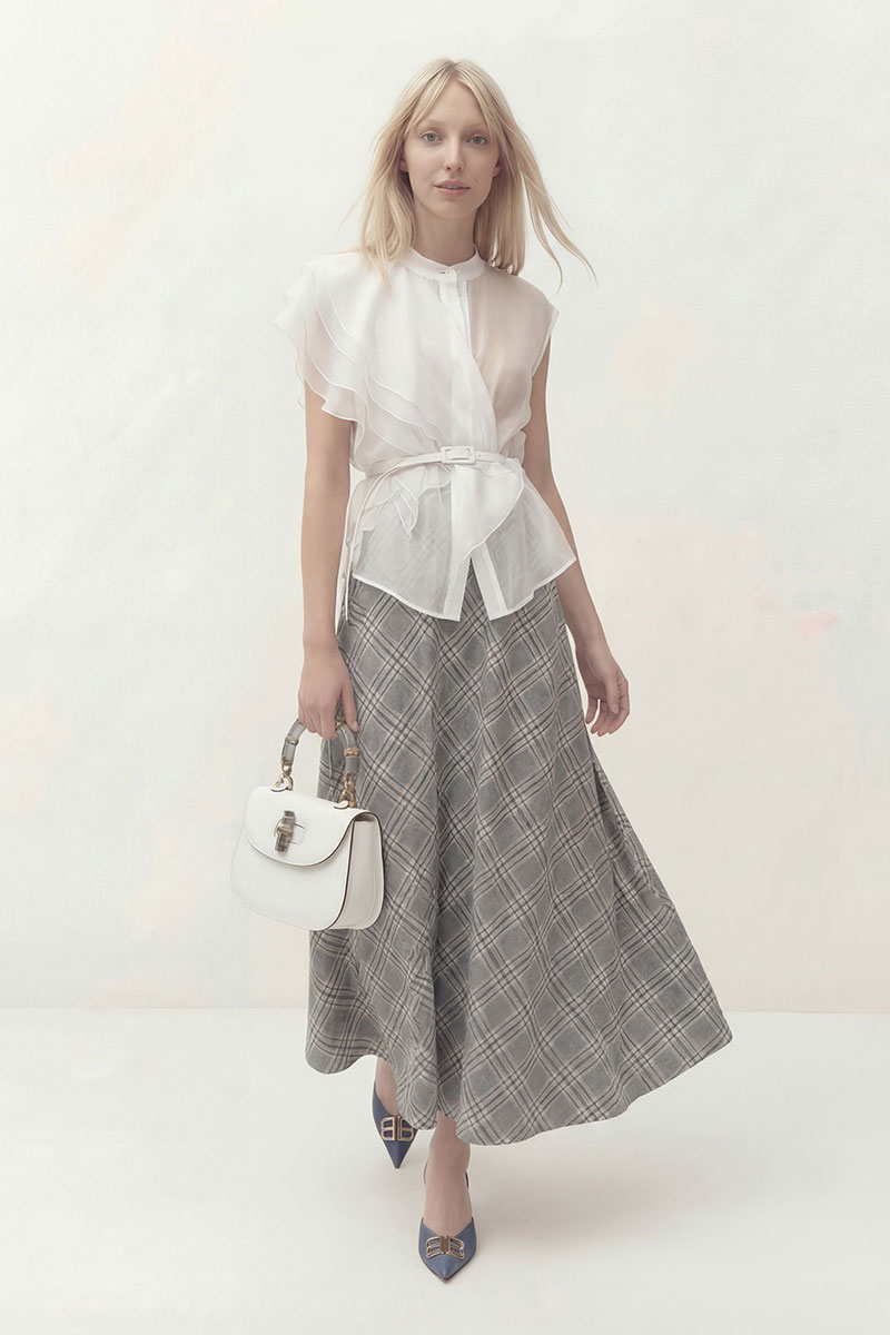 Юбка годе из костюмной ткани на подкладке. По линии талии притачной пояс и застёжка по боковому шву на потайную молнию. В боковых швах прорезные карманы.